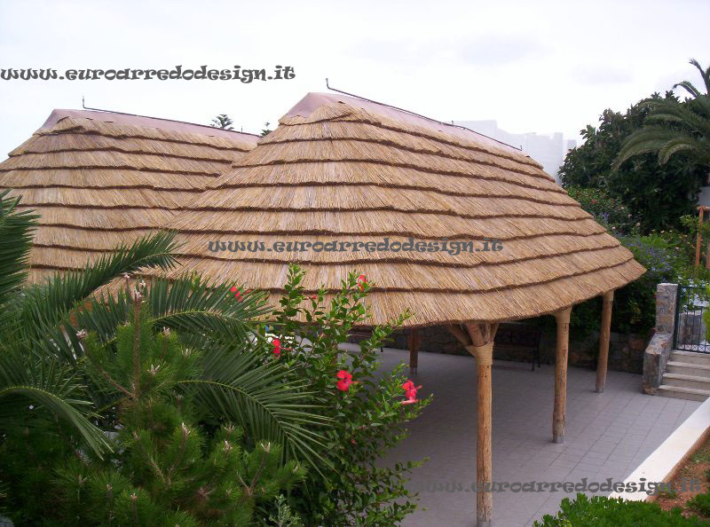 Realizzate con canna africana, si inseriscono all’interno della gamma di coperture in paglia, canna e palma, pensate per valorizzare contesti come stabilimenti balneari, piscine, giardini e strutture ricettive.