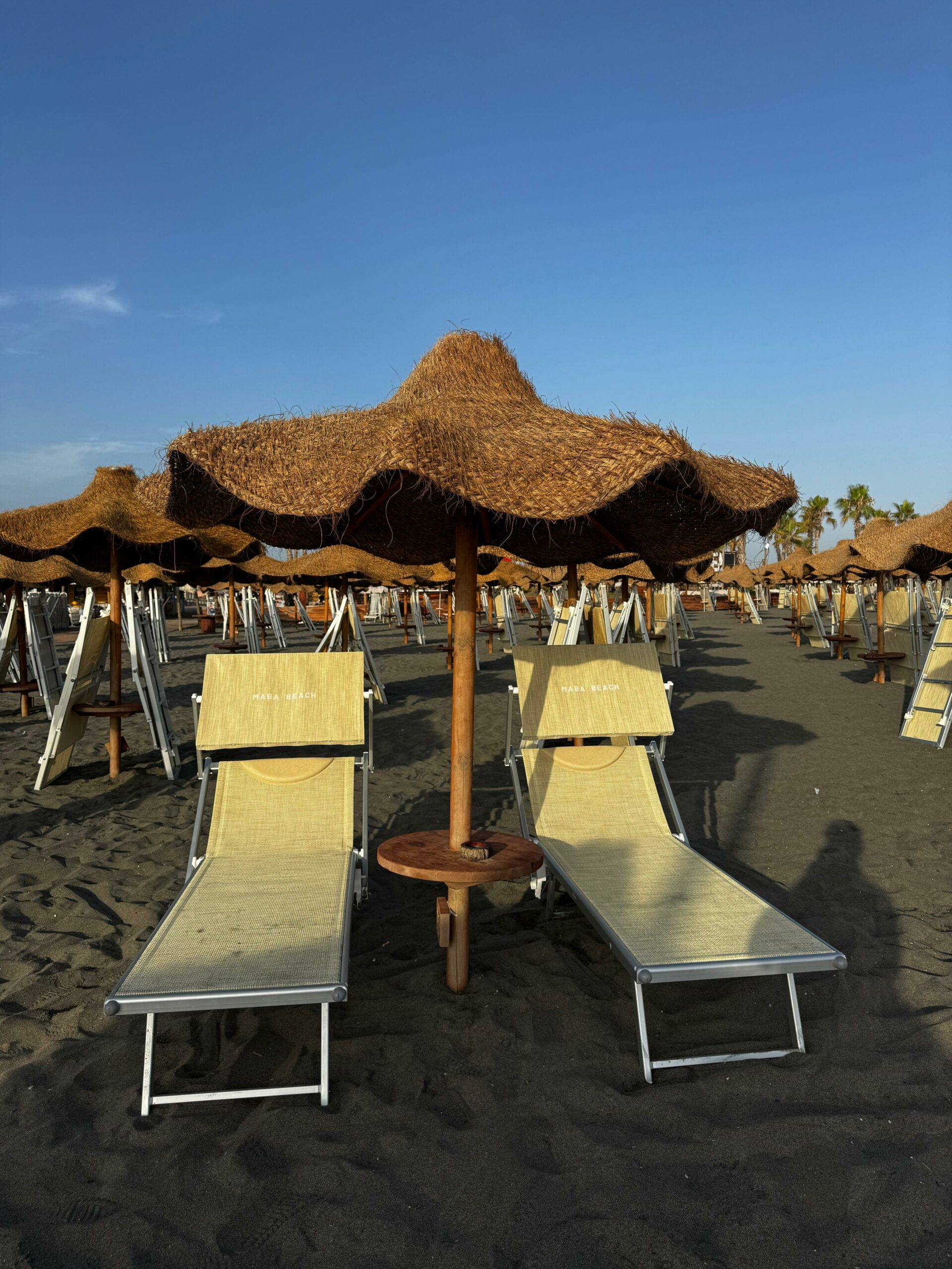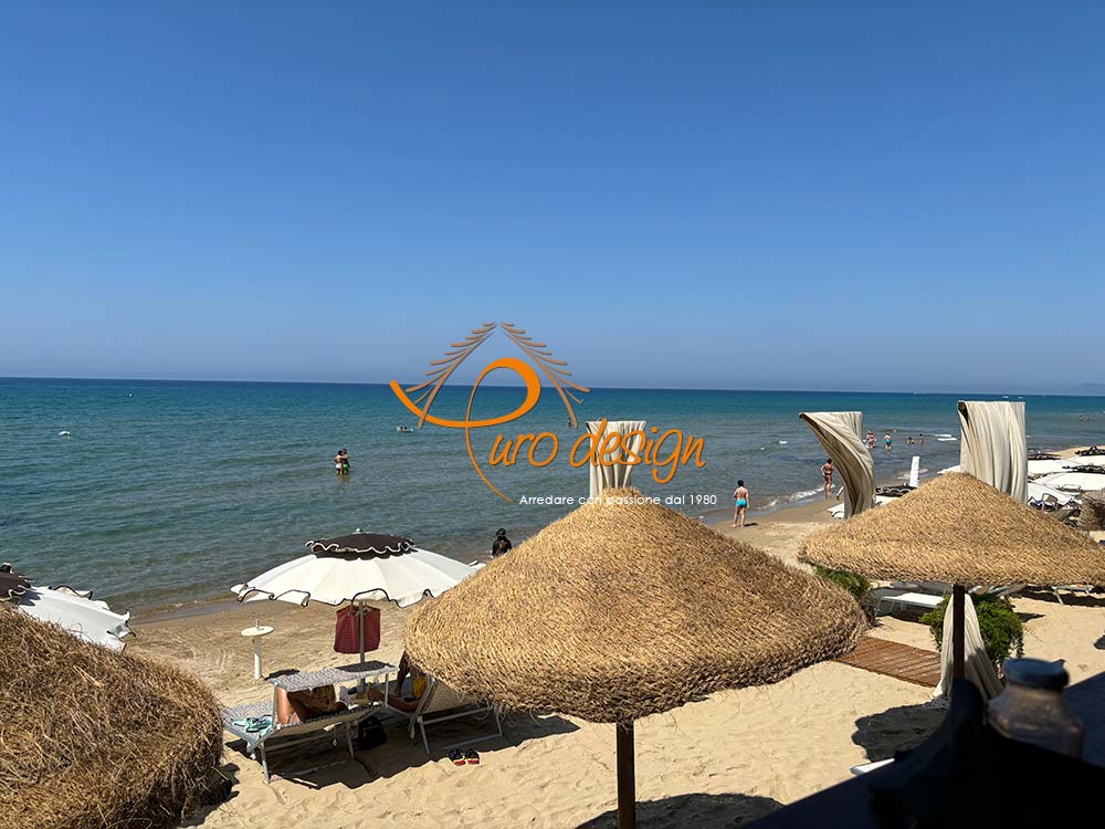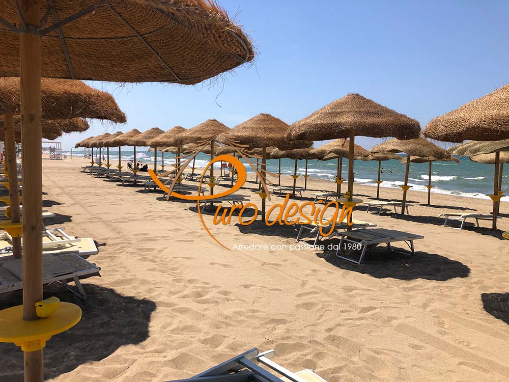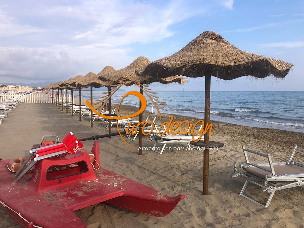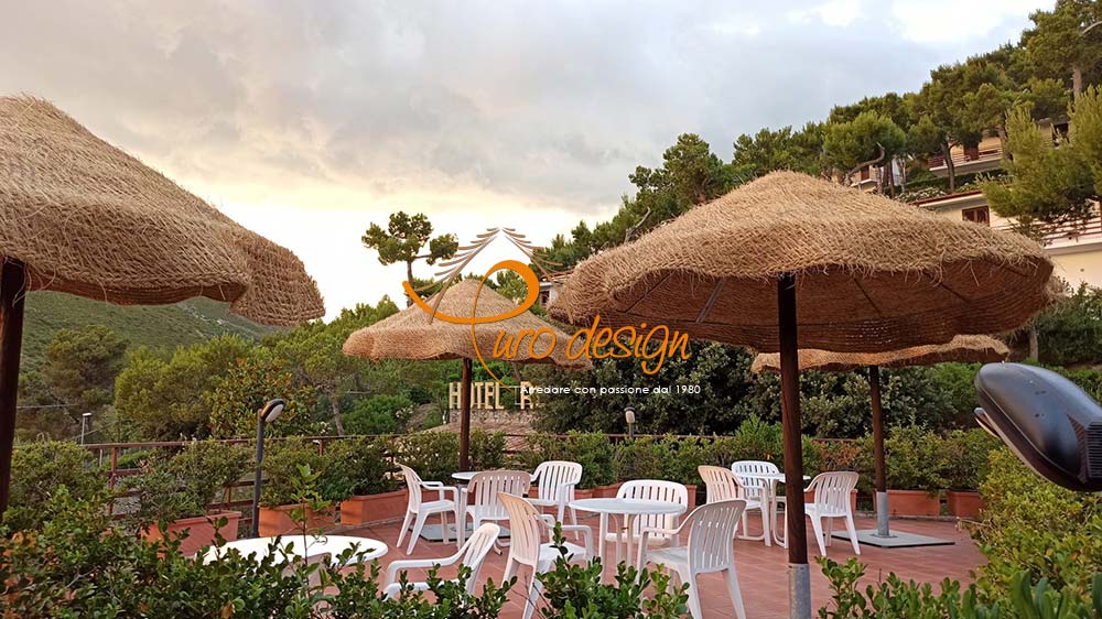 Ombrellone in stuoia intrecciata, disponibile con palo autoclavato in legno/palo in pino.